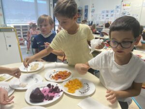 Le lendemain, nous avons goûté certains légumes cuits et certains fruits.