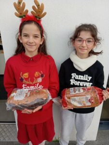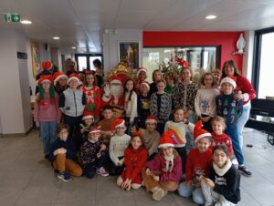 En décembre, nous avons rencontré le Père Noël. Nous avons réalisé une carte de Noël avec nos petits copains de CP.